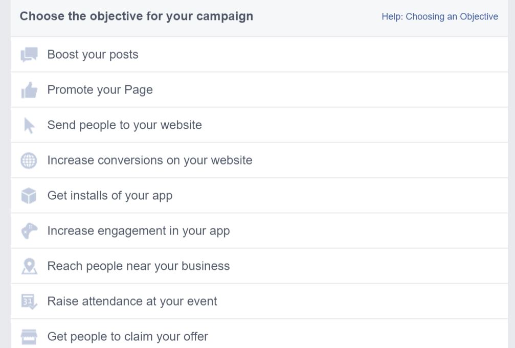 Facebook-mainonnan vaihtoehdot